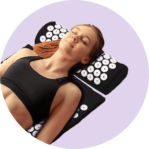 Acupressure is an ancient holistic treatment that’s similar to massage, acupuncture, and reflexology. To experience the benefits of this ancient pain relieving treatment, simply lay your mat down on the bed or floor and place the small pillow directly above the mat.