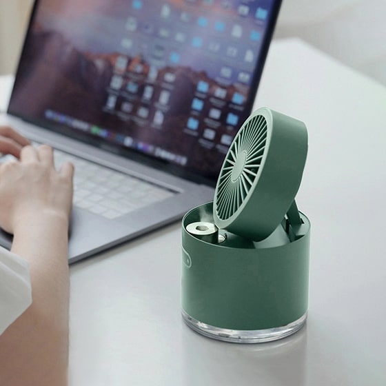 This air cooler fan and humidifier is fabulous & lets me feel a bit of coolness and humidity. Small but mighty, and super cute color too! The 3 speed feature works great.