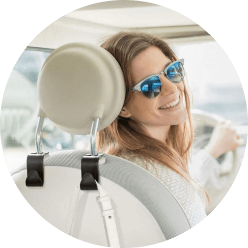 I spend 2.5 hours in my car every day, so I added two of these at the front seat of my car to hold up face masks without them falling down at the far side, and to hold up my sunglasses on the closer side (they clip in, actually, so it works even better than I thought). I also use it to hang up any items that need it, like a work vest, or a grocery bag with smt breakable in it. It clips onto the metal pieces of the headrest, and although in my mini, they fit completely on the seats, in the BMW they rest "on top" of the seats on the front. It works fine. I clip them off if I have a passenger with me, but most of the time I do not.