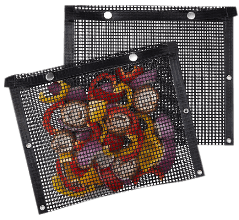 This non-stick grill mesh bag is so great! We bought it to use on our grill. Instead (for now!) we use these in our oven to roast veggies, and they work great! Nothing falls through, and the veggies roast evenly, without needing to be turned much since the bag has the tiny mesh holes. This is sturdy, well made, and my favorite part, dishwasher safe, and easy to clean!! I highly recommend!
