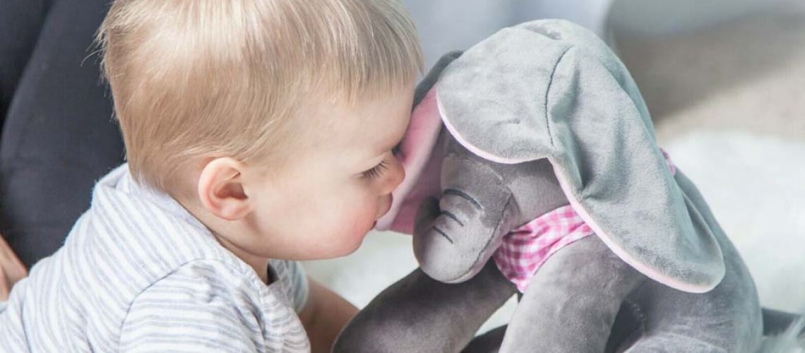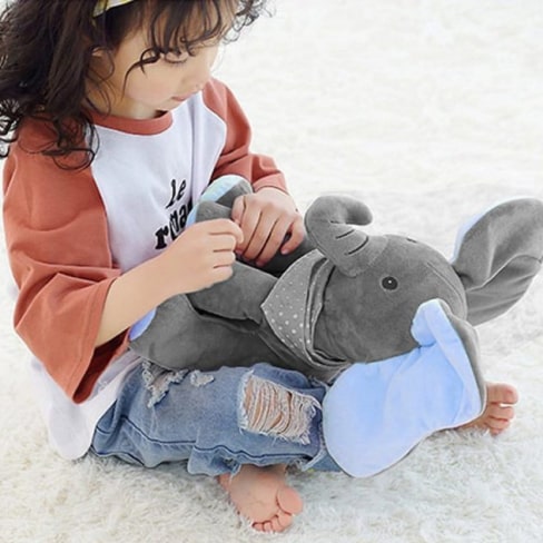 My daughter received this as a gift and let me tell you, it is THE cutest singing stuffed animal i have ever seen! It’s such great quality, so so soft and well made and the voice is super cute. (Not creepy like some!!) The elephant’s ears move to the music and play peek-a-boo with baby. It’s held up great so far even with my 1.5-year-old pulling on the ears and pushing the buttons a hundred times a day! We show this off to everyone! I think it will become my go-to baby gift for friends now, and would definitely purchase another one if anything were to happen to ours. I am shocked at the price, something this great of quality and cuteness would generally be upwards of $45-50, so at this price is the perfect buy!!