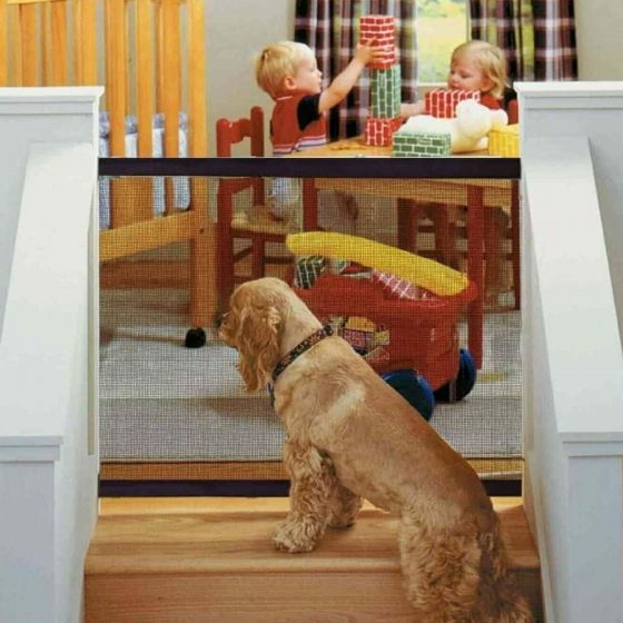 I was looking for a gate to put at the top of a staircase that is not a straight opening, but has an angled opening that a standard expansion gate would not work on. This gate fit perfect in that angle! It is lightweight gate and it is very easy to store when not in use – just take down completely and fold or roll up on side and attach it to the other side. You will not go wrong with the purchase of this gate.