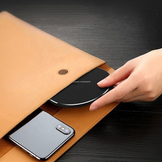 With this charger, you can easily stop worrying about having to carry plenty of different cords and plugs with you. The size of 3.85×3.85×0.23 inches makes it easy to put in any pocket or bag. A safe (it has a short-circuit protection of the receiver and avoids overheating and overcharging), durable, reliable, and stylish charger will be not only a great gadget, but also a great addition to your working place.
