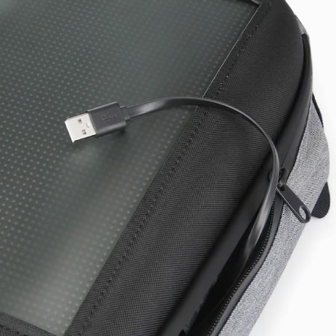 Amazing product I bought this almost a year ago and have worn it nearly every day its spacious inside and very easy to adjust the outside display. However It does NOT come with a power source you should buy it with a portable USB Charger. Also as one may expect. It doesn't handle rough travel well (tossing dropping or throwing the bag) the wires may short out.